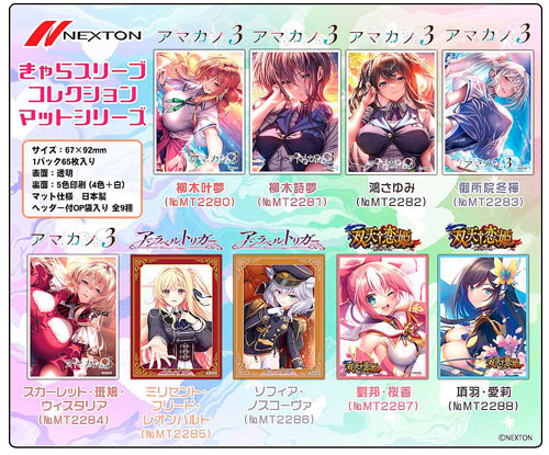 人気ゲームブランド「ネクストン」最新作「アマカノ3」「アンラベルトリガー」「双天†恋姫」など美少女ゲームヒロインたちがマットスリーブ化!